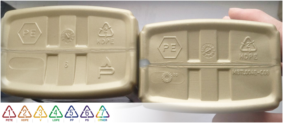 В основном на таре располагают рисунок петля Мебиуса. Это треугольник из трех стрелочек, который указывает, что пластик возможно повторно переработать либо материал изготовили из вторичного сырья. Внутри треугольника находится число от 1 до 19: оно обозначает вид пластика.